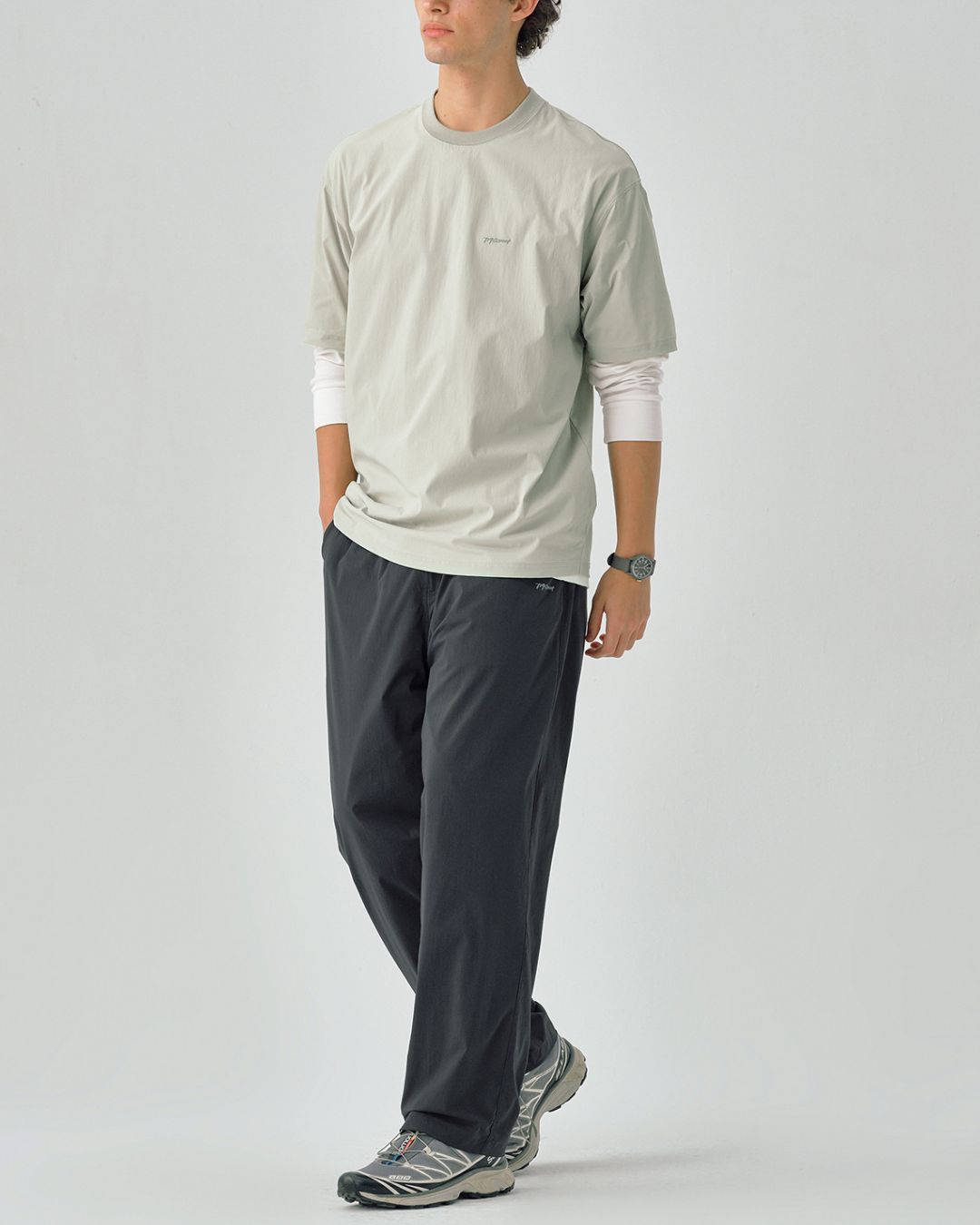 足元だけこのテックパンツで外す。